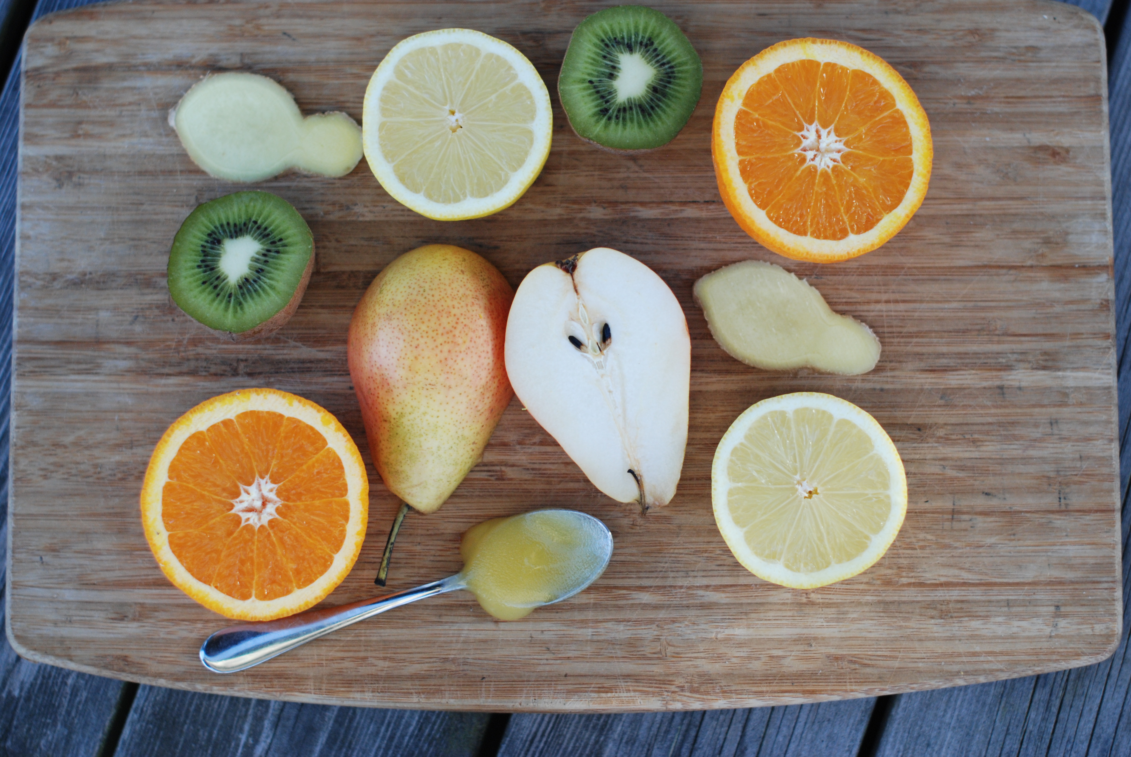 . I tillegg hadde vi tilfeldigvis en kiwi og noen påbegynte sitroner som måtte brukes.